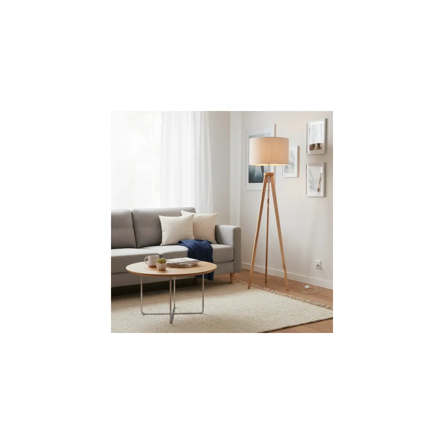 La lámpara de pie Engdahl aporta un estilo sofisticado y cálido gracias a su pie de madera de fresno barnizado y su pantalla en tela de saco color beige. Su diseño combina materiales naturales con líneas limpias, creando un ambiente acogedor en cualquier estancia. La pantalla de 42 cm x 32 cm distribuye la luz de manera uniforme, perfecta para rincones de lectura, salones o dormitorios.