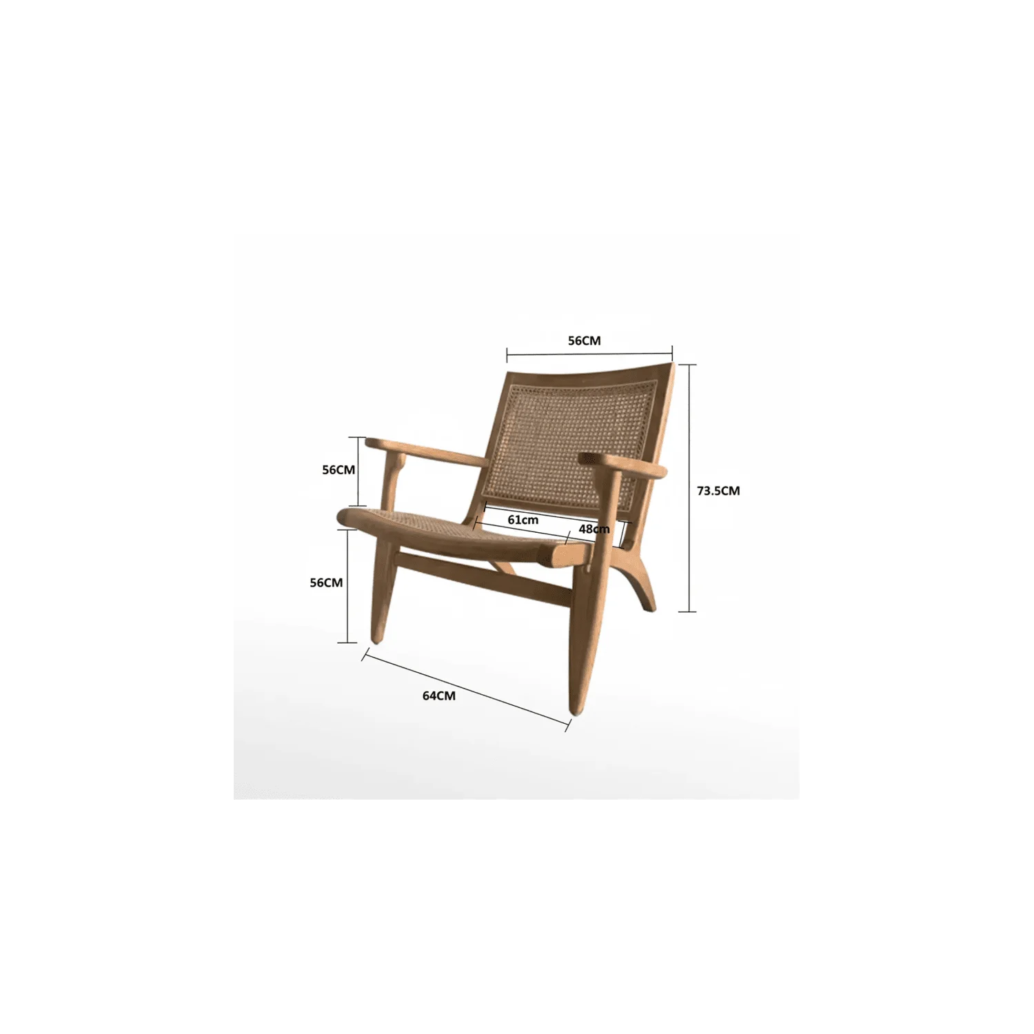 Se trata de un sillón de lo más original que está elaborado en madera de olmo de color natural con el asiento y respaldo realizado en rejilla trenzada de mimbre.