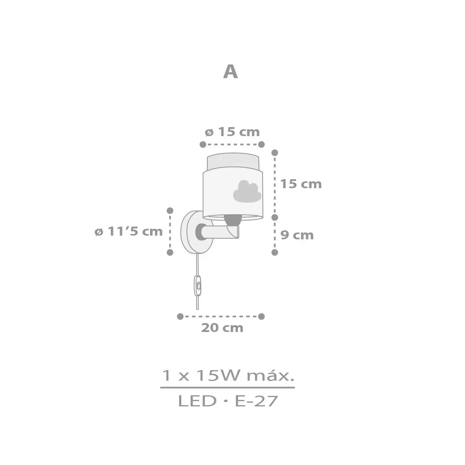 - Casquillo: E27, compatible con bombillas de hasta 15W (bombilla no incluida).