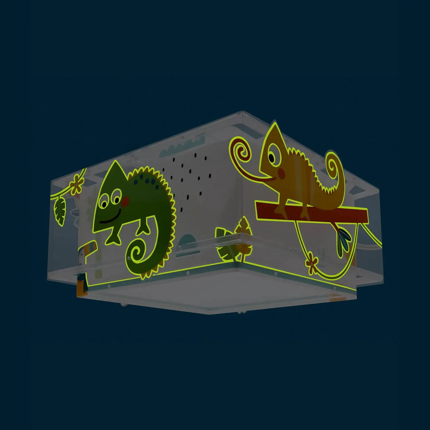 El Plafón de Techo Infantil Animales Jungla es la solución ideal para iluminar y decorar la habitación de tus hijos. Con un diseño colorido y divertido que presenta un camaleón y otros animales de la jungla, este plafón proporciona una luz suave y acogedora, creando un entorno perfecto para el descanso y la fantasía. Al brillar en la oscuridad, se convierte en un compañero nocturno que ayuda a los niños a sentirse más seguros y tranquilos durante la noche.