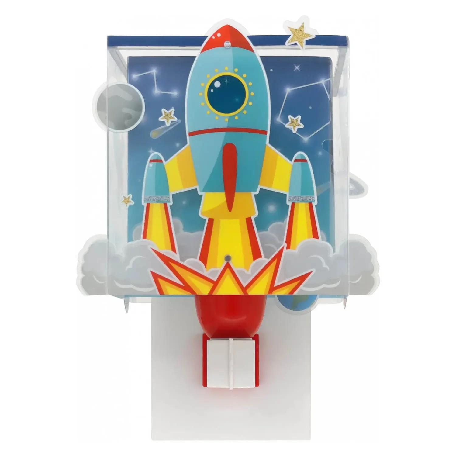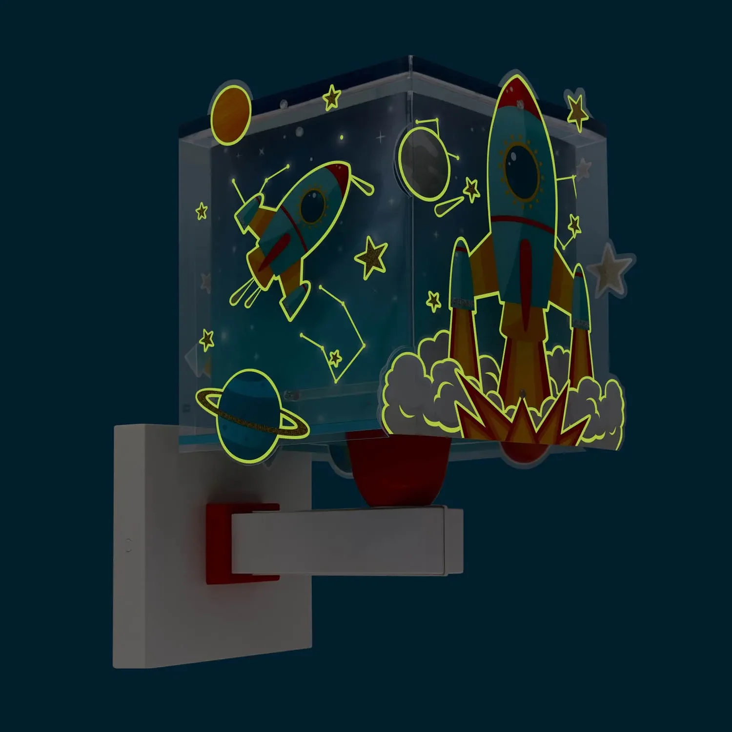 • Diseño espacial: Representa un cohete y estrellas que brillan en la oscuridad.
