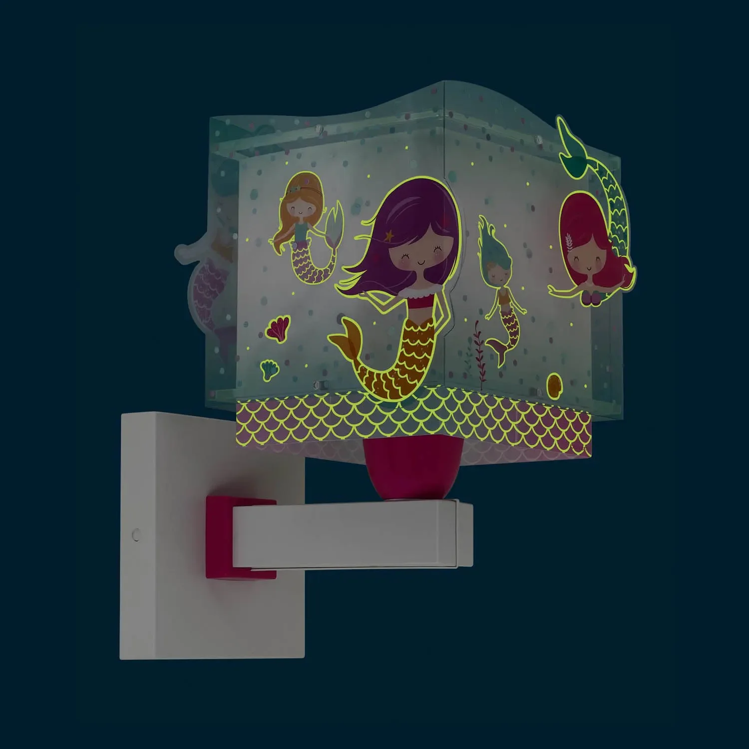 El Aplique de Pared Infantil Sirenas es la opción perfecta para darle un toque mágico a la habitación de tus pequeños. Este diseño encantador con motivos de sirenas en colores vibrantes y que brilla en la oscuridad, hará que la habitación se llene de fantasía y diversión. Sus principales características son: