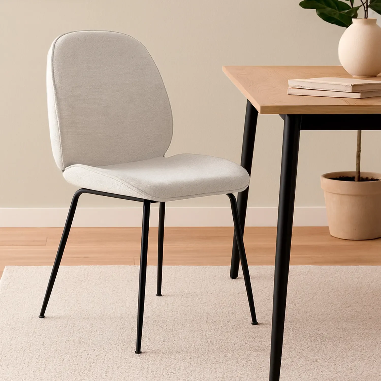 Es perfecta para quienes desean asientos que se integren fácilmente en el entorno sin renunciar al diseño. Su tejido resistente y su estructura metálica aseguran durabilidad, mientras que su estética neutra permite combinarla con una amplia gama de muebles y acabados.