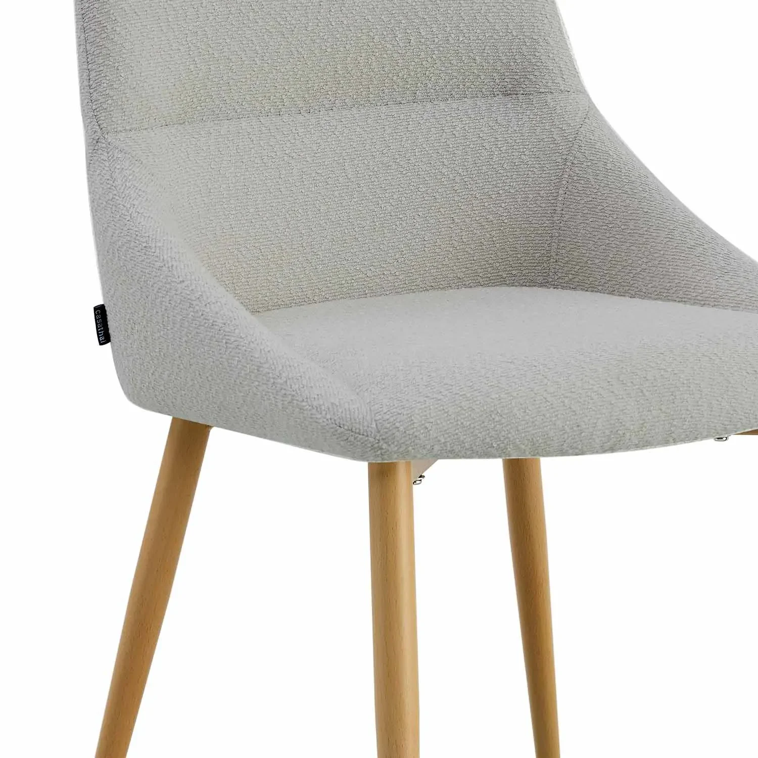 - Asiento tapizado en textil de color gris claro