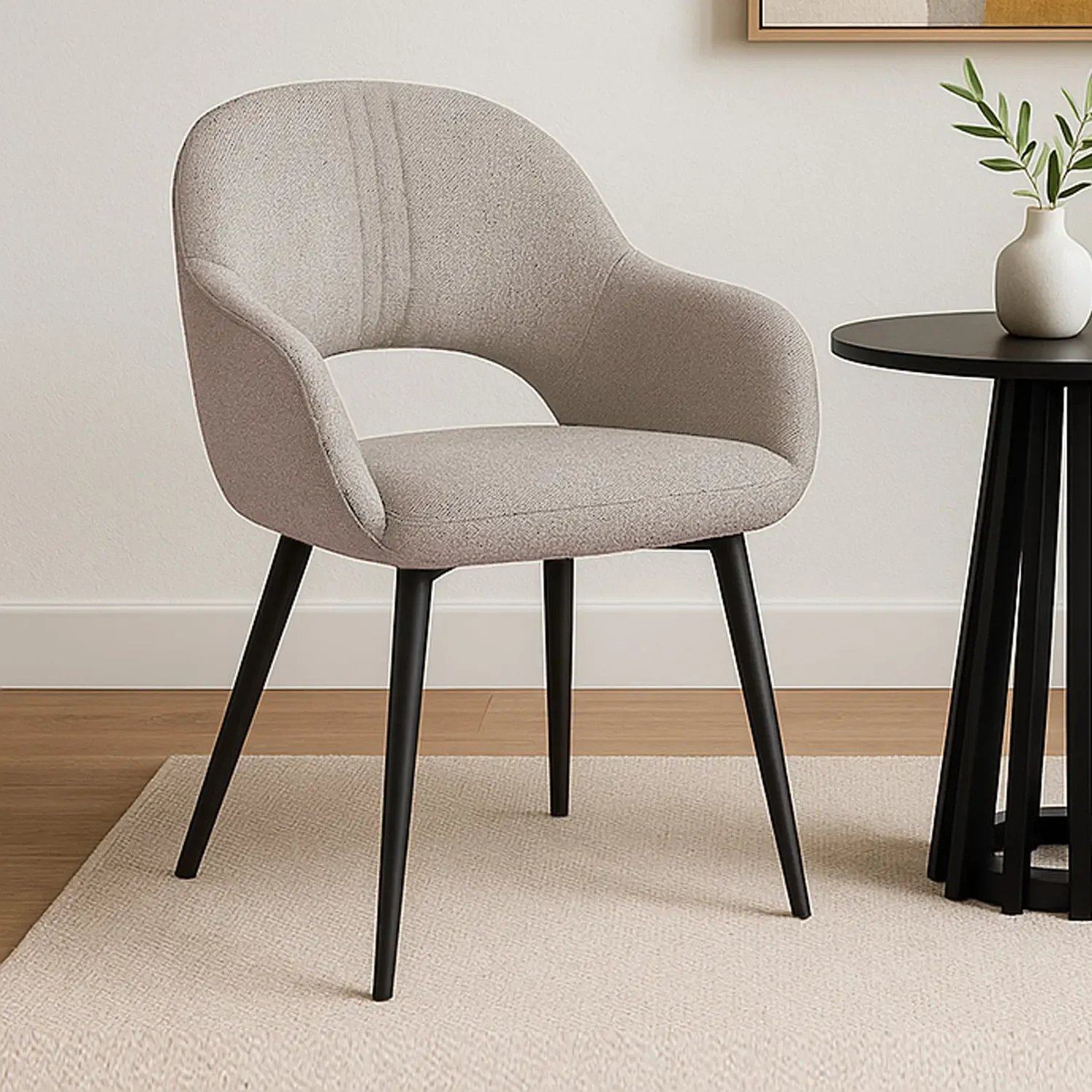 Esta silla combina comodidad y estética minimalista, ideal para comedores, oficinas en casa o rincones de lectura. El color arena aporta calidez al ambiente y se adapta a diferentes paletas de decoración, mientras que el acolchado interior garantiza una experiencia cómoda durante horas. Su diseño contemporáneo hace que sea una pieza tanto funcional como decorativa. La estructura metálica negra asegura durabilidad y estabilidad, mientras que el interior de madera contrachapada y foam proporciona un soporte ergonómico que cuida tu postura.
