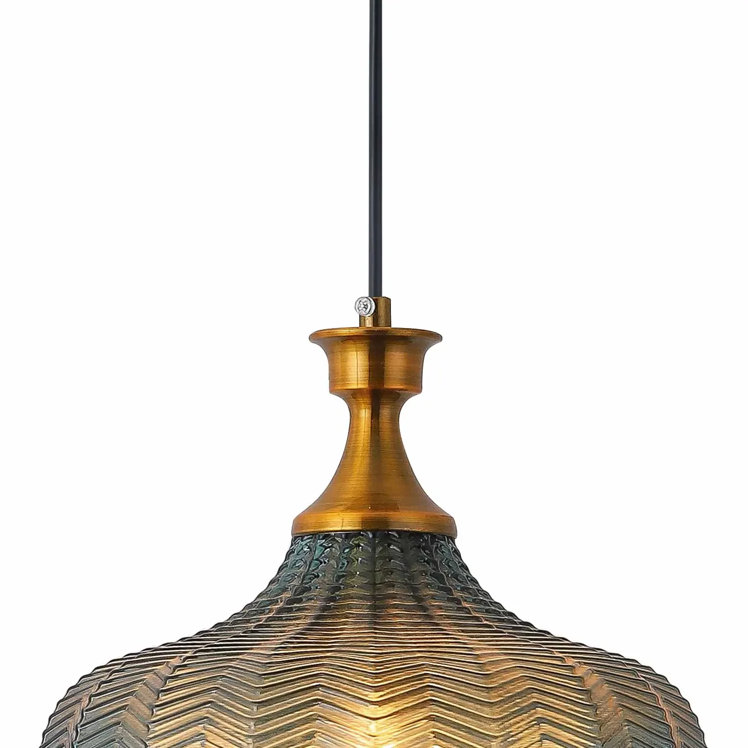 Su pantalla de cristal tallado en un elegante tono aguamarina genera destellos únicos al contacto con la luz, mientras que el acabado dorado de su estructura aporta un aire lujoso y sofisticado. Gracias a su diseño refinado, esta lámpara es ideal para salones, comedores o dormitorios, integrándose perfectamente tanto en espacios modernos como clásicos. Su tamaño medio la hace adecuada como luminaria principal en estancias pequeñas o como complemento en composiciones de varias unidades.