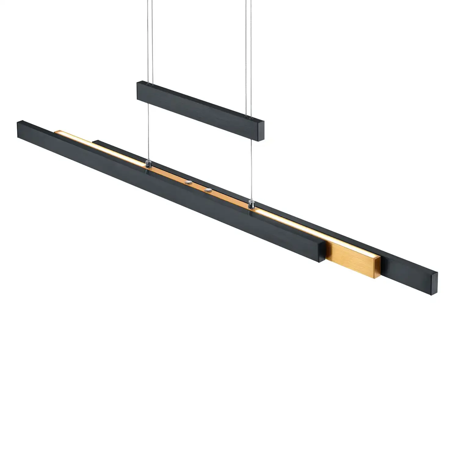 Su estructura metálica resistente y su elegante acabado en negro y oro aportan un estilo sofisticado a cualquier espacio interior. Con un flujo de 5300 lúmenes y un rango de temperatura de color ajustable de 2700K a 5000K, garantiza una iluminación uniforme, confortable y adaptable a cualquier momento del día.