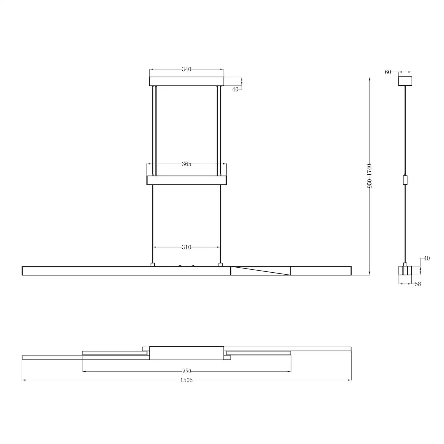 Instálala en el techo mediante su sistema de montaje extensible incluido. Ajusta la altura según el entorno (95–150 cm) y regula la intensidad y la temperatura de color con la función táctil de 4 niveles. La luz bidireccional ilumina de manera uniforme arriba y abajo, perfecta para salones, comedores o zonas de trabajo.