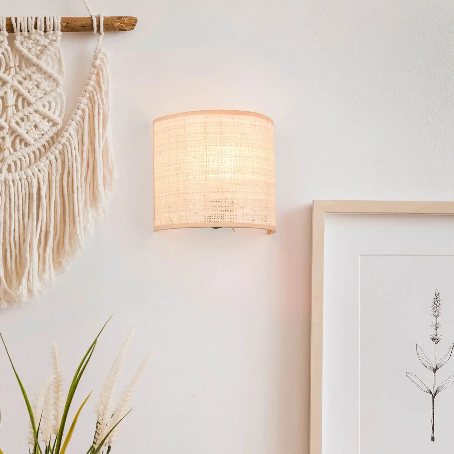 El Aplique Teresa con pantalla de algas marinas es una pieza única que destaca por su diseño artesanal y su acabado natural. Ideal para ambientes relajados y estilos decorativos como el boho, mediterráneo o nórdico, este aplique proyecta una luz suave y envolvente que realza las texturas del espacio.