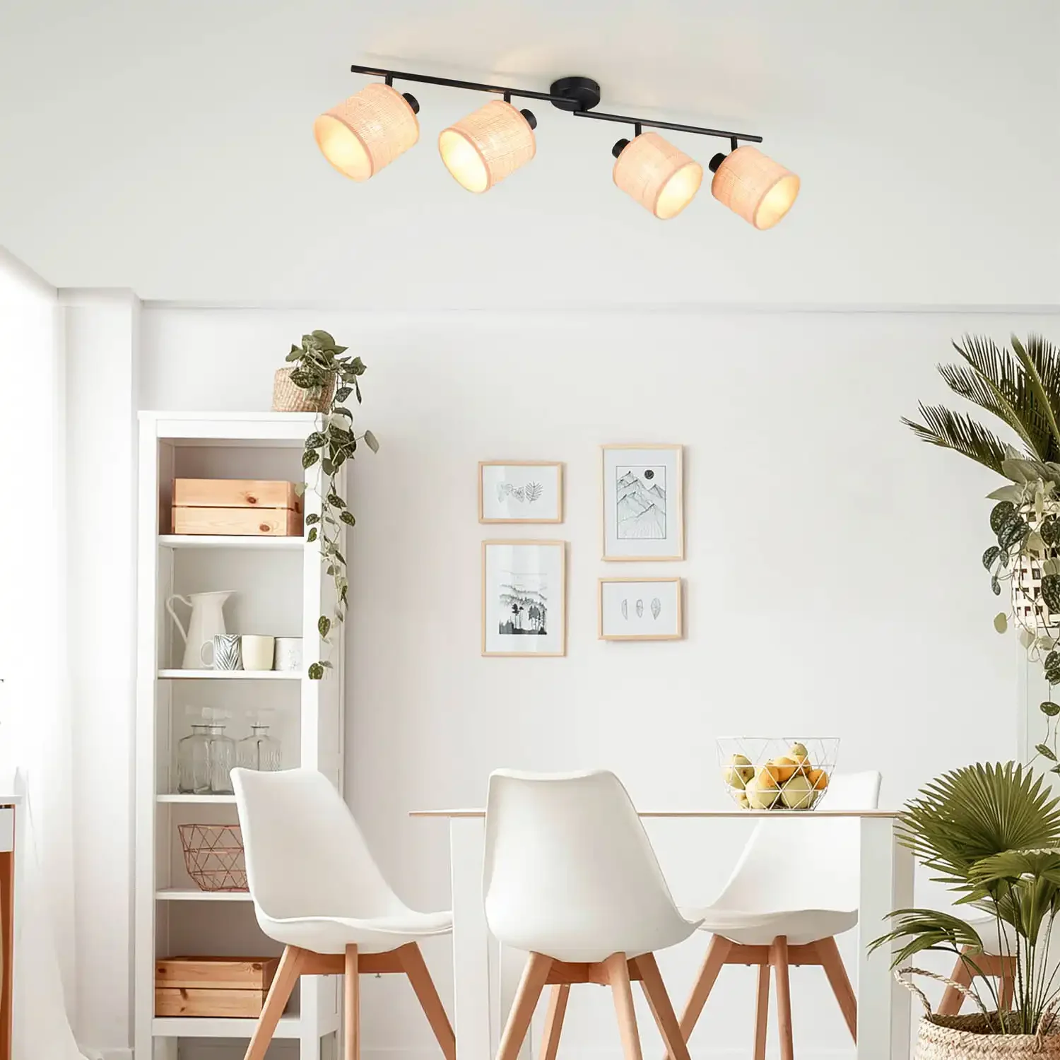 Gracias a su sistema pivotante, puedes dirigir cada foco para resaltar zonas específicas del espacio, ya sea en el salón, pasillo, comedor o dormitorio. Además, su montaje dual en techo o pared ofrece gran flexibilidad de instalación, adaptándose a diferentes estilos decorativos como el boho, mediterráneo o nórdico.