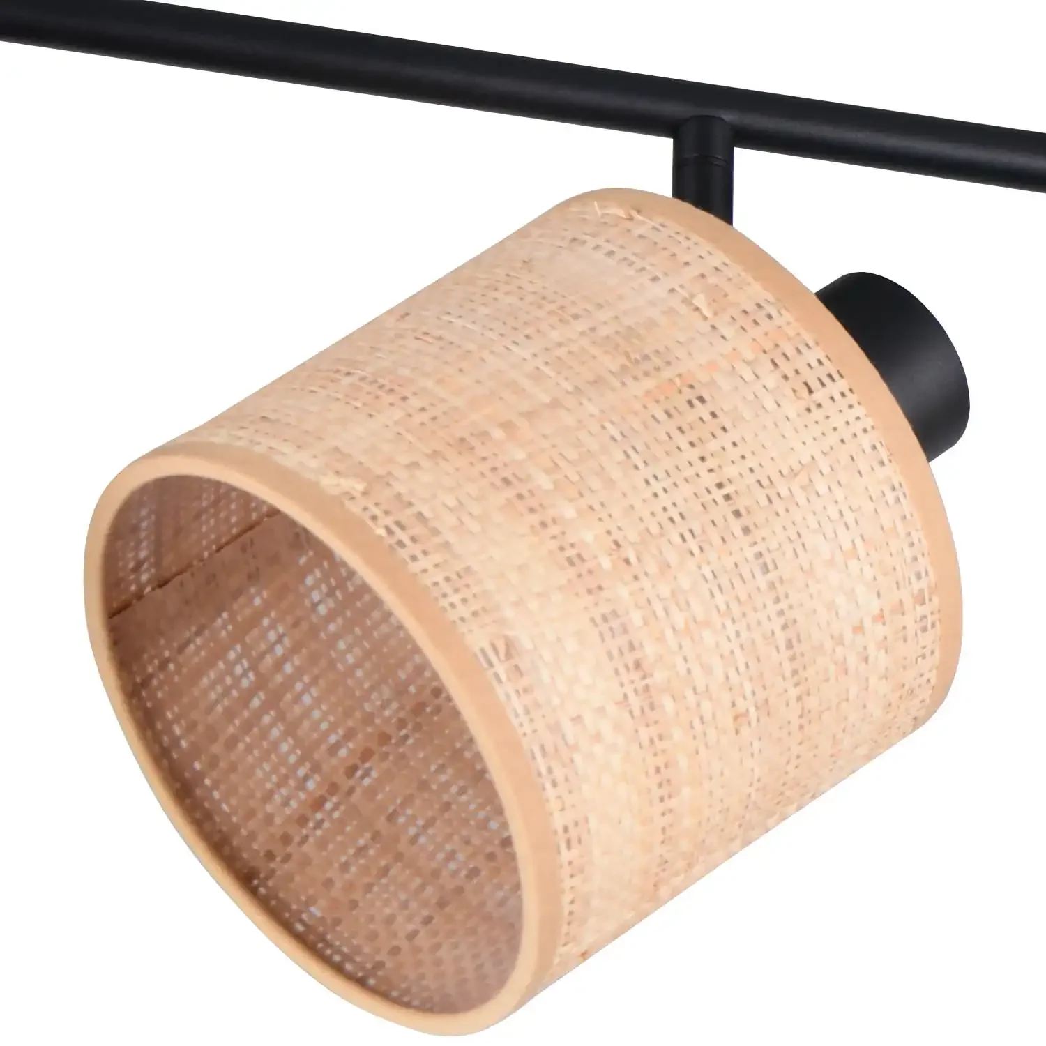 El Foco Teresa 4 Luces aporta un equilibrio perfecto entre diseño natural y funcionalidad moderna. Fabricado en metal resistente color estera negra, combina con pantallas trenzadas de algas marinas, que filtran la luz con suavidad, generando una atmósfera acogedora y natural.