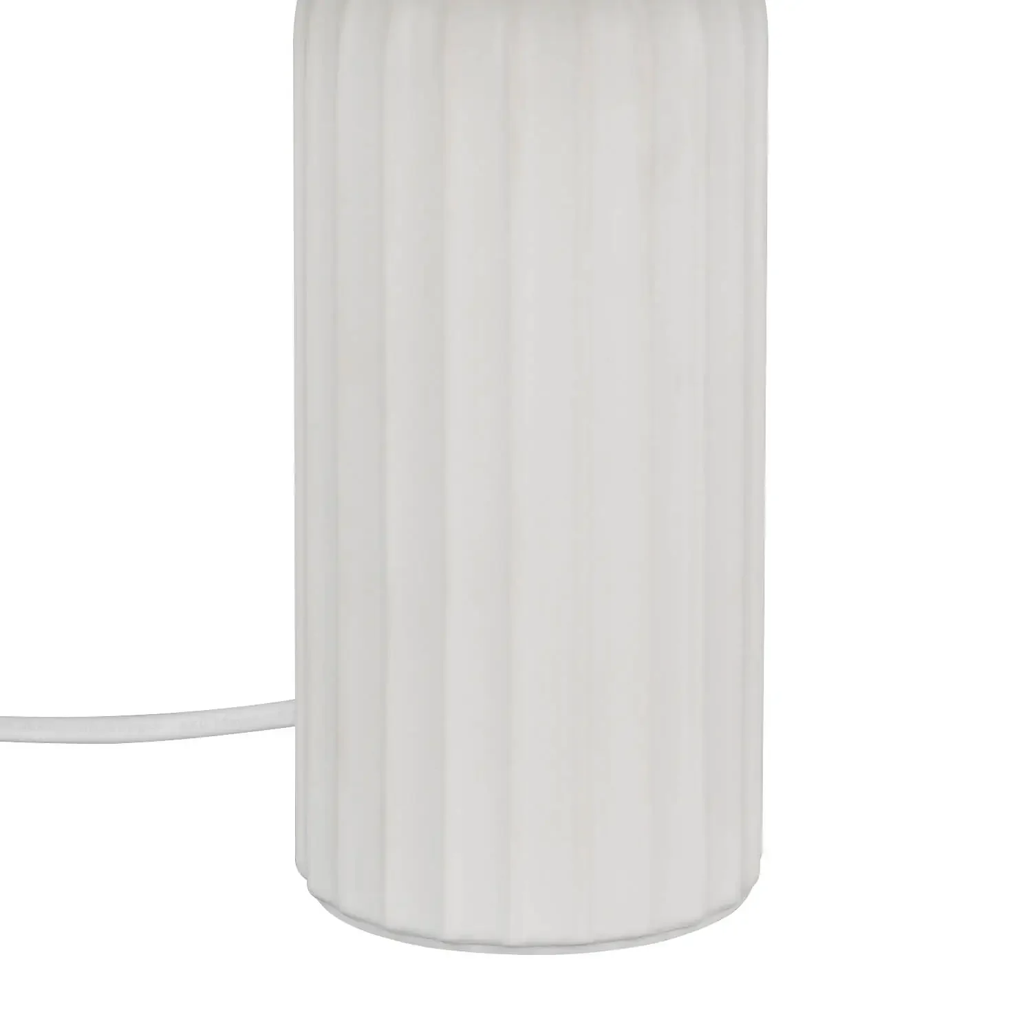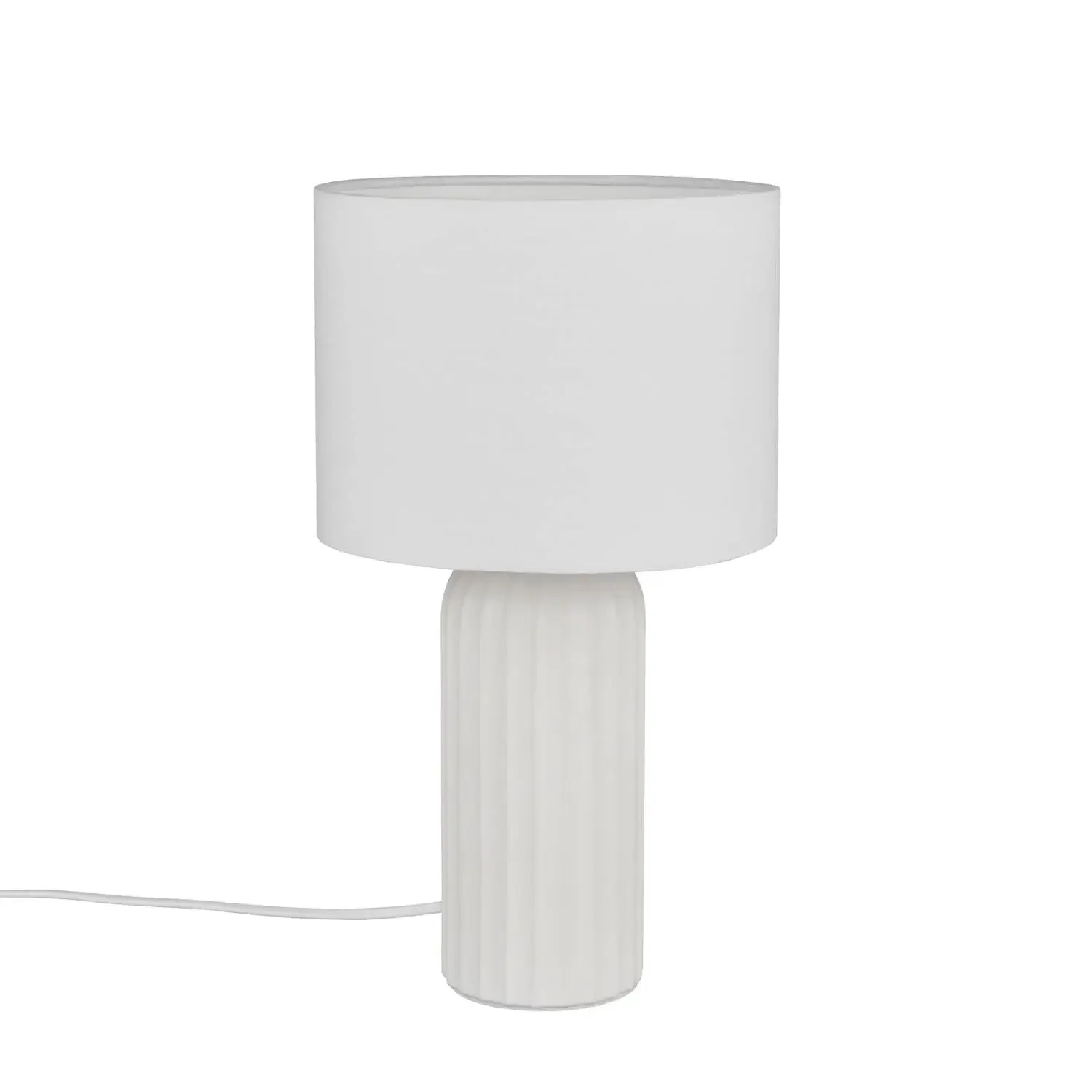 Su base de cerámica blanca aporta un acabado elegante y resistente, mientras que la pantalla de tela suaviza la luz, evitando reflejos incómodos y generando un entorno agradable para leer, trabajar o relajarse. Su diseño minimalista permite integrarla fácilmente en estilos de decoración modernos o clásicos.