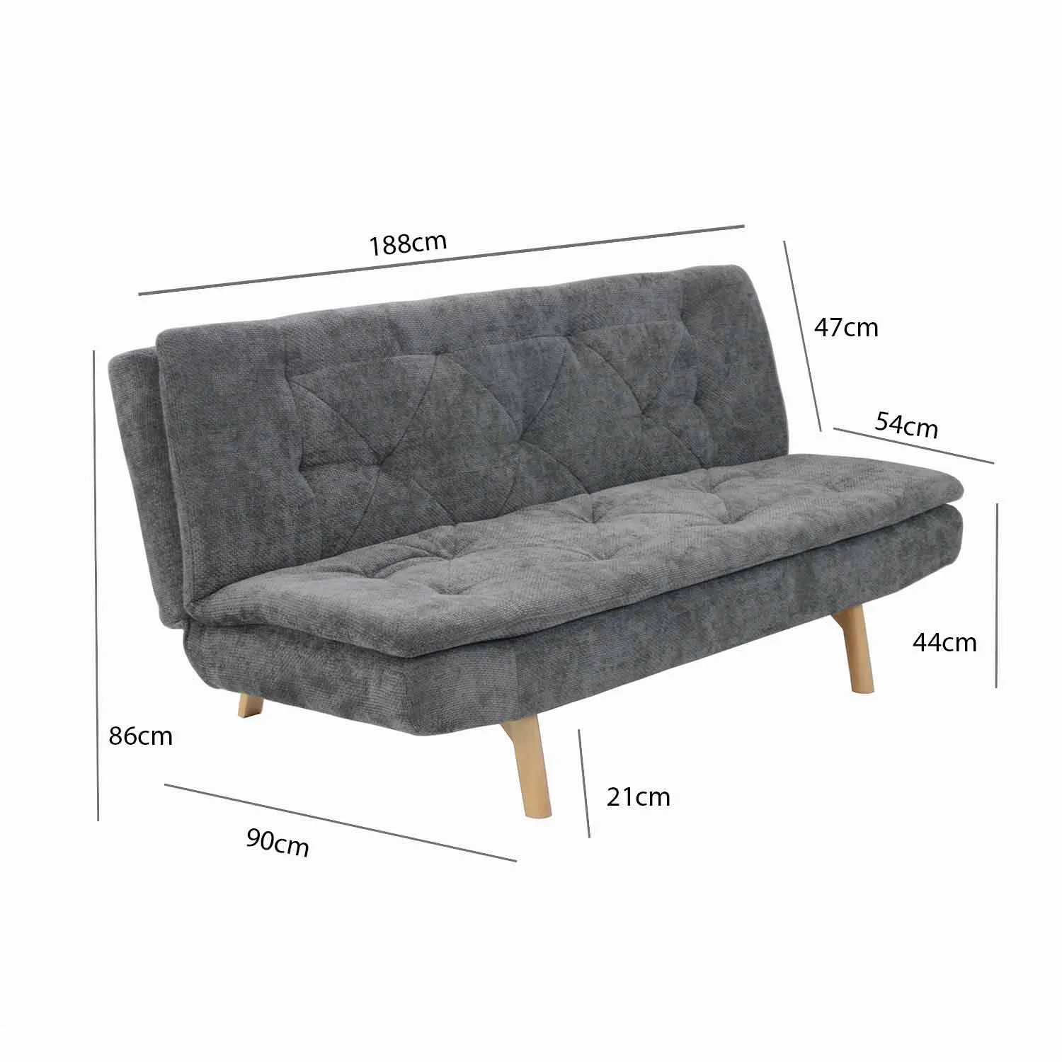 - Medidas optimizadas: 188 cm ancho x 90 cm profundo x 86 cm alto como sofá.