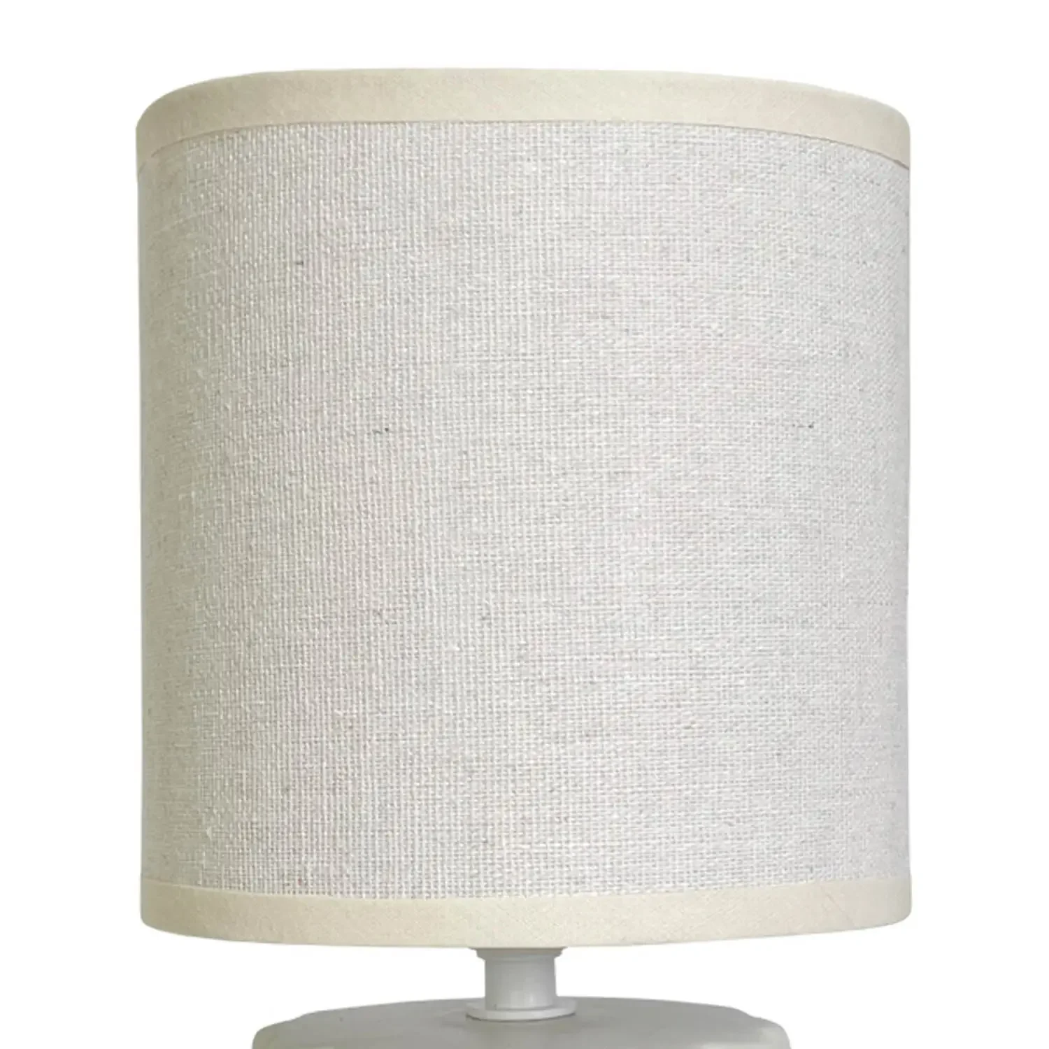 - Base de cerámica blanca con pantalla de tela blanca de Ø13 cm.