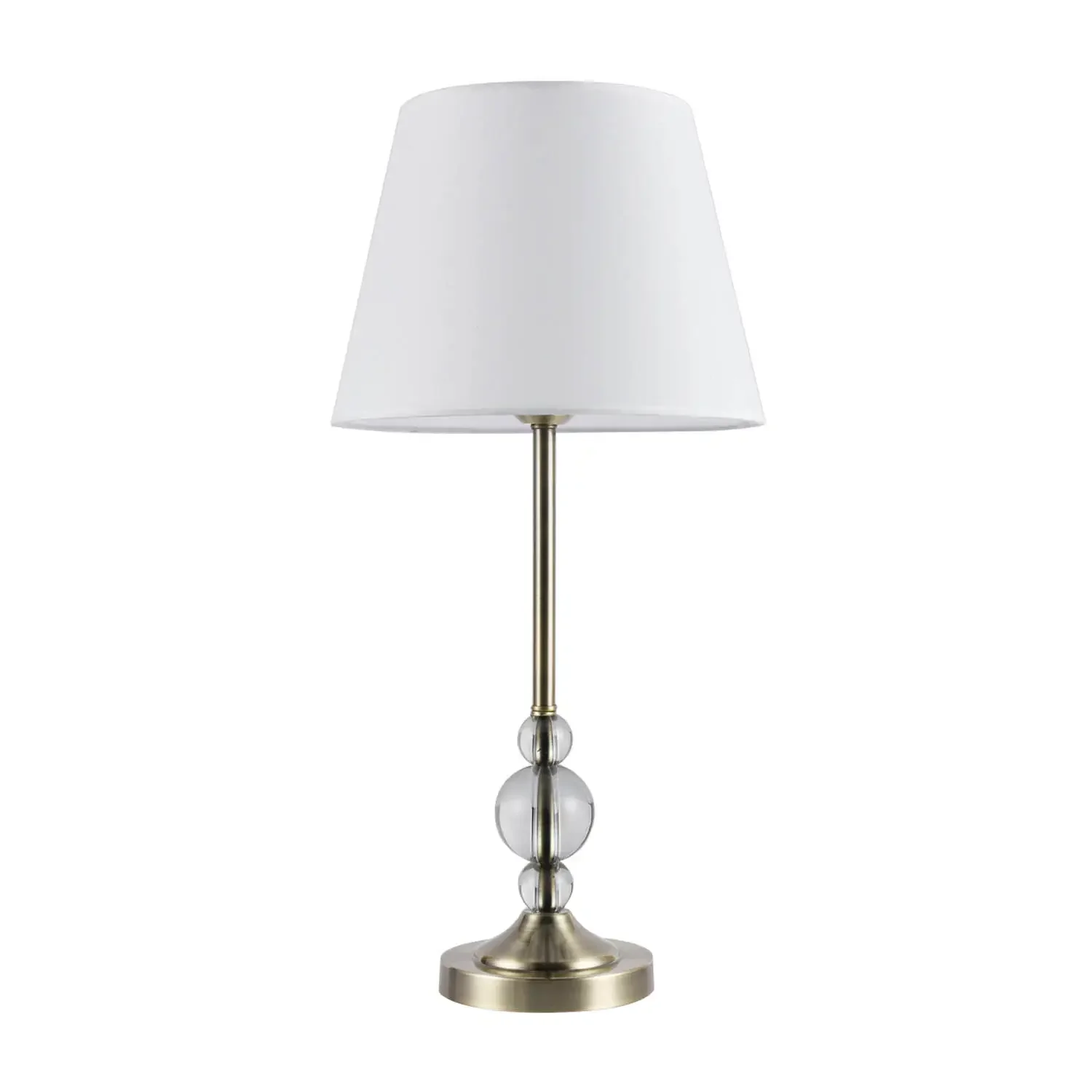- Detalles decorativos en cristal y pantalla de tela