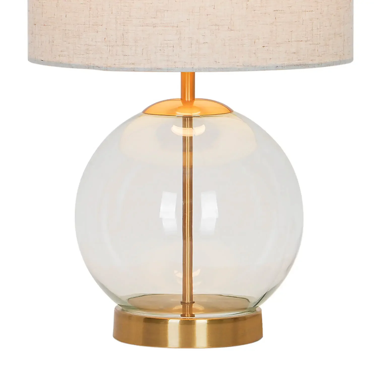 La Lámpara De Mesa Metal Latón E27 45cm Mirel es una pieza altamente decorativa gracias a su estructura metálica, esfera de cristal y pantalla de tela. Perfecta como lámpara de mesa para salón o dormitorio, aporta calidez y estilo con una iluminación suave y acogedora. Características técnicas: