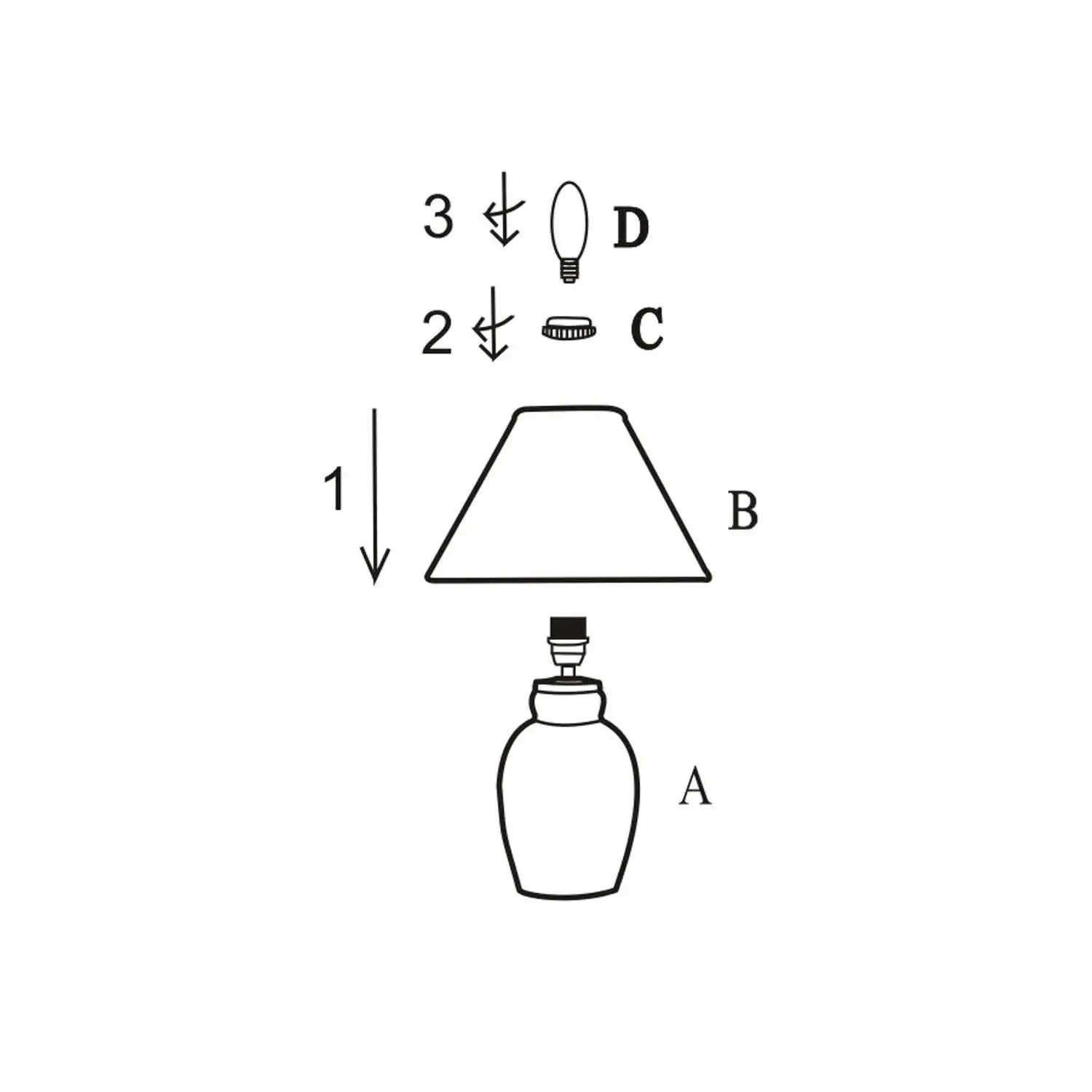 Coloque la lámpara sobre una superficie firme y estable en interior. Instale una bombilla E27 de hasta 60W (preferiblemente LED). Conecte el cable a la red eléctrica y utilice el interruptor ON/OFF para su encendido y apagado. No requiere montaje complejo.